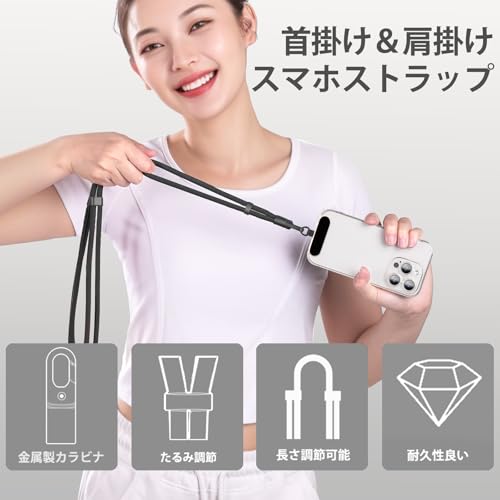 【首掛け&肩掛け・2WAYストラップ】スマホストラップは、首掛けと肩掛けの2WAY仕様で、シーンに合わせて自由に切り替え可能。長さ調節機能付きで、体型や好みにピッタリ調整でき、スマホを安定保持。通勤時は電車内でスマホを落とす心配なく、両手が空いて読書や荷物持ちがラクラク。