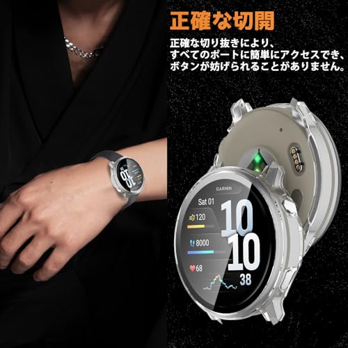 [ToVioc] ケース For Garmin Venu 4 45 mm 保護ケース 【2枚セット】 保護カバー ガラスフィルム 一体型 新デザイン PC+ガラス素材 全面保護 高透過率 高感度 傷防止 耐衝撃 装着簡単 カバー Garmin Venu 4 45 mm 対応 (クリア+ブラック)