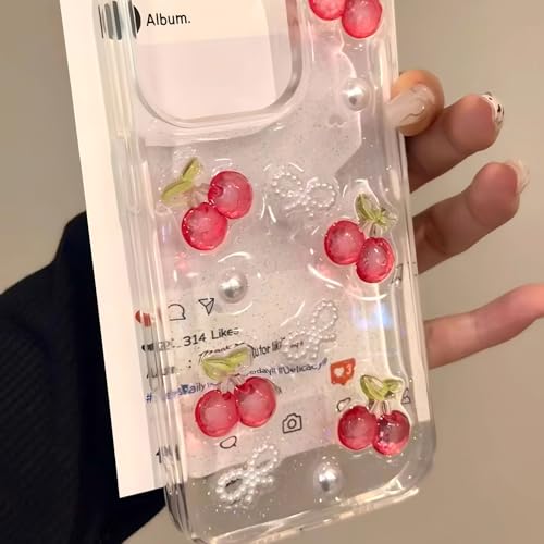 iphone 13Pro 用 ケース チェリー リボン 立体 キラキラ ラメ クリア 韓国 かわいい いphoneケース 人気スマホケース デコ ストラップホール付き おしゃれ ランキング シンプル 透明 薄型 アイフォンケース TPU 携帯カバー