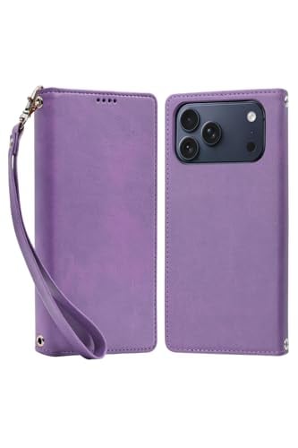 シズカウィル iPhone17ProMax用 ケース カバー 手帳型 本革調 レザーケース パープル 1個入り