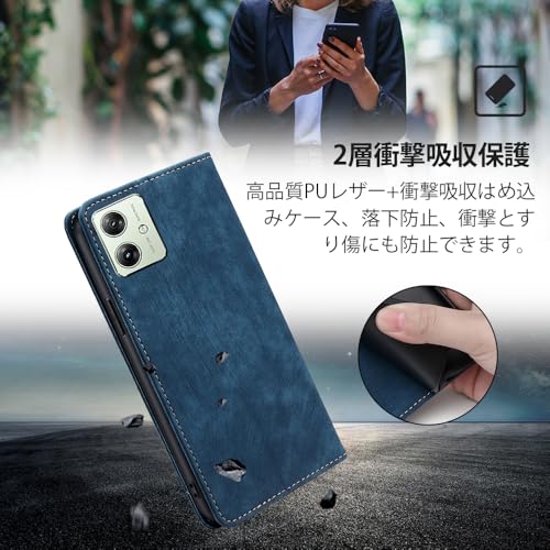 AiMaoo Motorola Moto G64 5G / G64Y 5G 対応 ケース 防塵 耐衝撃 傷つけ防止 軽量 手作り PUレザー カード収納 RFID磁気防止 マグネット スタンド機能 ケース 手帳型 Motorola Moto G64 5G / G64Y 5G 用 (ブルー)