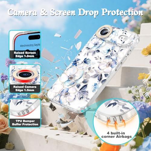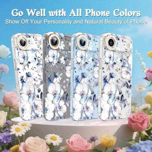 MILPROX iPhone Air 対応 花柄ケース マット背面 サラサラ手触り 指紋/手垢つきにくい 黄変しない 耐久性 変形防止 可愛い おしゃれ フラワー 女性人気 強化ガラスフィルム付き 6.5インチ(ブロッサム)
