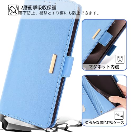 Cobeimisr for iPhone 17 Pro ケース 手帳型 通用 【カードケース 一枚同梱】 アップル17プロ iPhone17Pro 対応 アイホン17プロ ストラップケース アイフォン17プロ いphone17pro カバー アイフォン17pro 適用 case マグネット 携帯カバー ストラップ ストラップ付きケース スマホケース ブルー