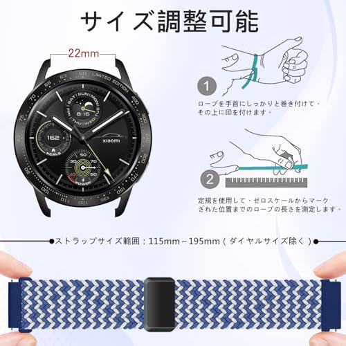 [ZoRoll] バンド 22 mm/20 mm ナイロンバンド 22ミリ 対応 編み伸縮性 腕時計ベルト スポーツストラップ 22ミリ 20ミリソフト 通気性 快適性 交換ベルト磁気クラスプ クイックリリース 脱着便利 男女兼用 (22 mm対応 ブルーホワイト)