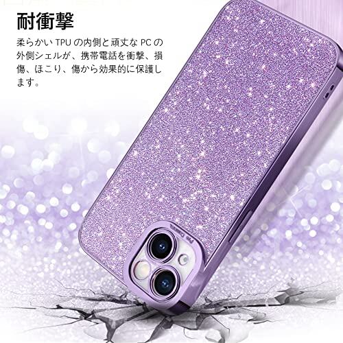 GUAGUA iPhone 14 ケース キラキラ いphone 14 用 ケース クリア2in1 ダイヤモンド 透明 韓国 耐衝撃 おしゃれ かわいい tpu 薄型 軽量 グリッターケース ワイアレス充電対応 滑り止め ストラップホール付き 6.1インチ(パープル)