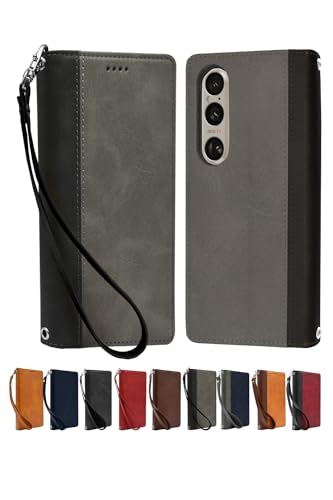 シズカウィル Xperia 1 vi SO-51E SOG13 ケース カバー 手帳型 本革調 レザーケース グレー×ブラック 1個入り