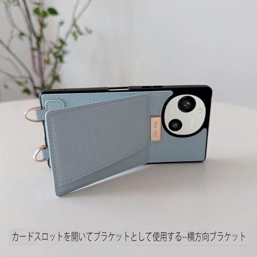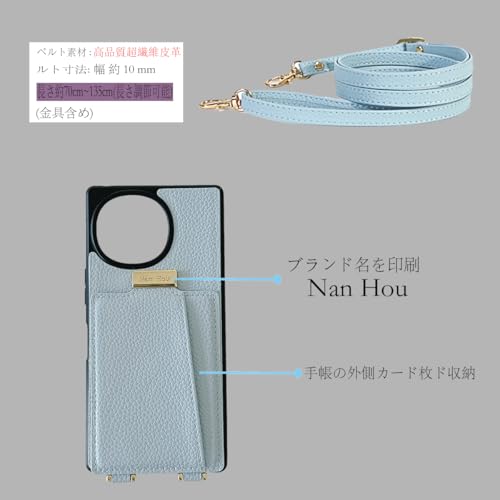 NanHou AQUOS R9 ケース 手帳型 高質PU(超繊皮革)ファッション SH-51E 手帳型 斜めショルダーストラップ付き(長さ調整可能)耐衝撃 保護 ケース 背面鏡付き 人気 携帯カバー 女性 上品 カードポケット スタンド機能 - ライトブルー