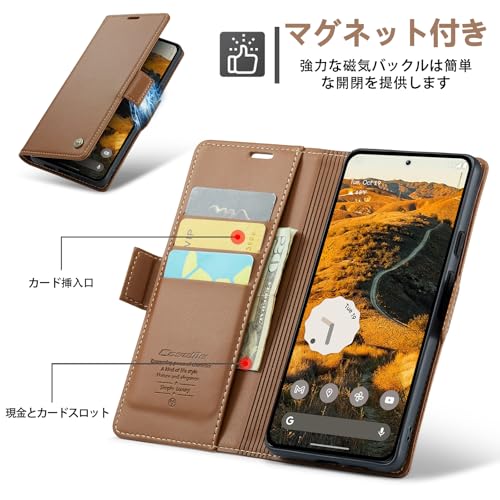 ReHowy Google Pixel 10 Pro XL ケース 手帳型 PUレザー 携帯便利 衝撃防止 擦り傷防止 全面保護 カード収納 保護カバー 財布型 磁気バックル付き タンド機能付き グーグルピクセル10プロxl 対応 携帯 カバー Google Pixel 10 Pro XL 用 手帳型ケース ブラウン