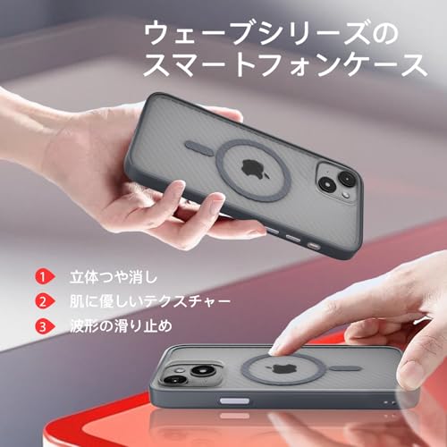iPhone 13 ケース iPhone 14 ケース MagSafe対応 【立体波形デザイン】 耐衝撃 肌に優しい感触 滑り止め ワイヤレス充電対応 いphone 13/14 スマホケース 衝撃吸収 ストラップホール付き アイフォン 13/14 カバー 指紋防止 落下防止 防塵 傷防止 人気 半透明 (アッシュ)