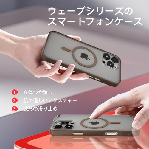 iPhone 16 Pro ケース MagSafe対応 【立体波形デザイン】 耐衝撃 肌に優しい感触 滑り止め ワイヤレス充電対応 いphone 16 Pro スマホケース 衝撃吸収 ストラップホール付き アイフォン 16Pro カバー 指紋防止 落下防止 防塵 傷防止 人気 半透明 (ブラウン)