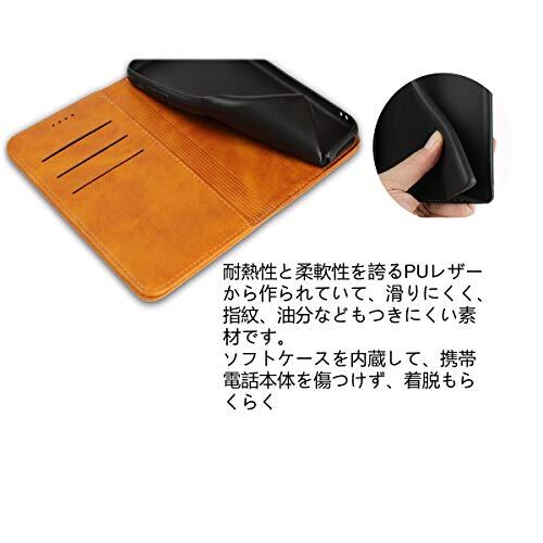 ①【上質な素材】外部は上質な合皮レザー素材を採用しており、放熱性が良く、傷や埃を防ぐことができます、滑りにくく、指紋、油分などもつきにくく。インナーケースは弾力性の柔軟黒TPU素材を採用しており、角までしっかり保護できるケースです、柔軟性があり本体への装着脱着も簡単です。衝撃吸収機能あり、しっかりの二重保護でお携帯を守り抜きます。