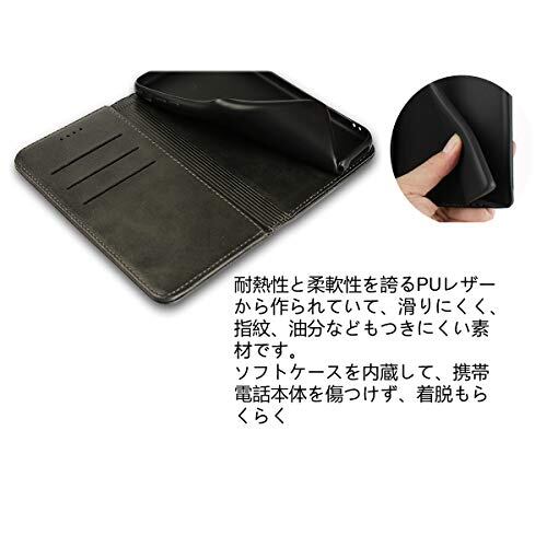 ①【上質な素材】外部は上質な合皮レザー素材を採用しており、放熱性が良く、傷や埃を防ぐことができます、滑りにくく、指紋、油分などもつきにくく。インナーケースは弾力性の柔軟黒TPU素材を採用しており、角までしっかり保護できるケースです、柔軟性があり本体への装着脱着も簡単です。衝撃吸収機能あり、しっかりの二重保護でお携帯を守り抜きます。