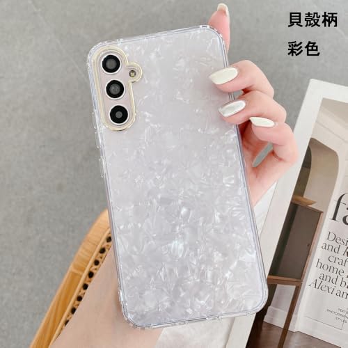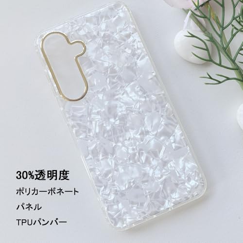 YUYIB スマホケース 対応 Samsung Galaxy A55 5G ケース SC-53E SCG27 ケース 30%透明 シェル柄 貝殻柄 かわいい おしゃれ 黄ばみなし ブランド 衝撃吸収 薄型 軽量 人気 ストラップ穴あり ギャラクシーA55 携帯カバー (ホワイト, Galaxy A55)