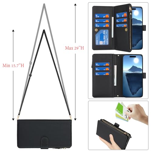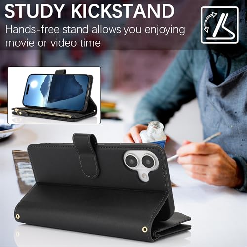 iPhone 16 用 ケース 手帳型 アイフォン16 カバー アイホン16 手帳ケース いPhone16 手帳型ケース iphone16 スマホケース iphone16 case zouzt 新しい 長ストラップ付き 肩掛け 革レザー 柔らかいTPU 多機能 チャック付き 財布型 カード収納 小銭入れ スタンド機能 マグネット 落下防止 耐衝撃 全面保護 おしゃれ 6色 ブラック