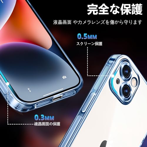 ALIGADUO iPhone 14Plus クリア ケース 耐衝撃 米軍MIL規格 アイフォン14Plus スマホケース PC背面 TPU 保護ケース バンパー カバー 傷つけ防止 ワイヤレス充電対応 クリアバック 6.7インチ用(ブルー)