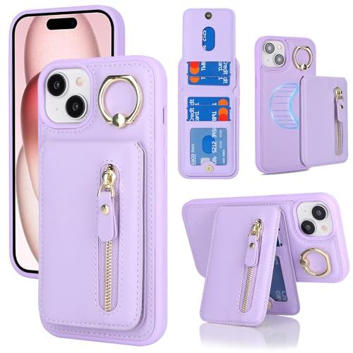 iPhone 15 ケース 分離可 カードケース リング付きケース magsafe対応ケース マグセーフ magsafe用 アイホン15 リング付き iPhone 15 カバー スマホケース アイフォン15 アイホン15 case 適用 iCoverCase リング カード収納 スナップ 横置き スタンド マグネット カード入れ ファスナー 携帯カバー パープル