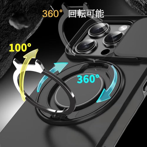 Cakublse いphone14pro iPhone14pro 用 ケース Magsafe対応 PC + TPU 二重保護 カメラの保護 落下防止 米軍MIL規格 耐衝撃 iPhone 14 Pro対応 スマホケース リング付き スタンド付き ブラック 黑