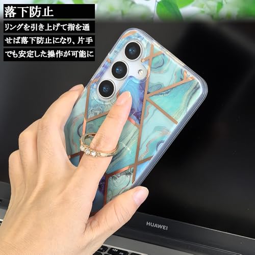 YUYIB ケース 対応 Samsung Galaxy s23 ケース SC-51D SCG19 ケース リング付き 大理石柄 メッキ加工 キラキラ おしゃれ かわいい 女性人気 キャラクター ディズニー 保護カバー 軽量 薄型 ギャラクシーS23 用 かばー (グリーン, Galaxy S23)