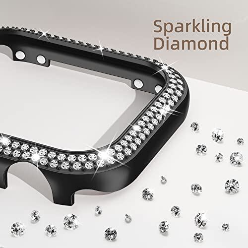 Missair コンパチブル アップルウォッチ カバー キラキラ ステンレス 44mm Apple Watch ケース 金属 ダブルダイヤモンド アップルウォッチ 飾りフレーム Series 8 7に対応 オシャレ レディース ブラック 44mm(液晶フィルムなし)