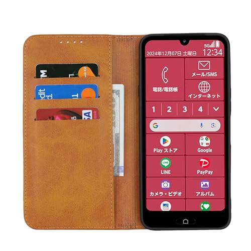 らくらくスマートフォン a A401FC ケース 通用 らくらくスマートフォン Lite MR01 手帳型 FCNT らくらくスマートフォン a カバー A401FC 手帳ケース らくらくスマートフォン Lite スマホケース MR01 携帯カバー case 適用 zouzt 合成皮革 財布型 カード収納 マグネット 横置き スタンド 大人っぽい 落ち着くデザイン 5色 ライトブラウン