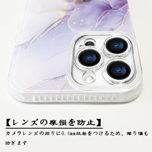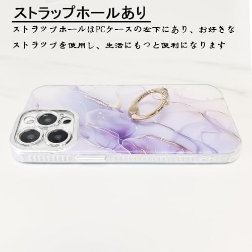 JOOBOY スマホケース 対応 iPhone 14 pro ケース リング付き 大理石柄 レンズメッキ加工 かわいい キャラクター ディズニー 美しい おしゃれ 女性 人気 保護カバー 薄型 軽量 アイフォン14プロ 携帯電話かばー (パープル, iPhone14 Pro)