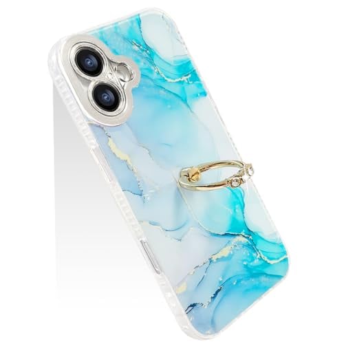 JOOBOY スマホケース 対応 iPhone 16 Plus ケース リング付き 大理石柄 レンズメッキ加工 かわいい キャラクター ディズニー 美しい おしゃれ 女性 人気 保護カバー 薄型 軽量 あいふぉん16プラス 携帯電話かばー (ブルー, iPhone16 Plus)