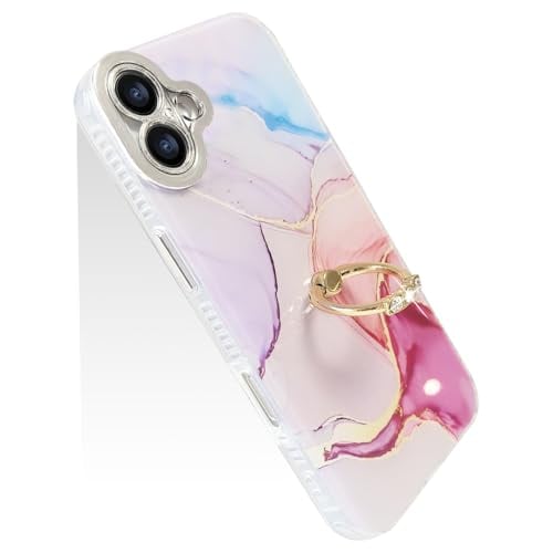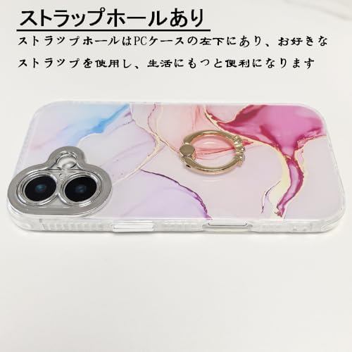 JOOBOY スマホケース 対応 iPhone 16 Plus ケース リング付き 大理石柄 レンズメッキ加工 かわいい キャラクター ディズニー 美しい おしゃれ 女性 人気 保護カバー 薄型 軽量 あいふぉん16プラス 携帯電話かばー カバー (ブルー.ピンク, iPhone16 Plus)