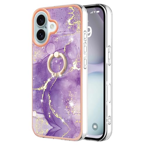 YUYIB スマホケース 対応 iPhone 16 ケース リング付き 大理石柄 メッキ加工 キラキラ かわいい キャラクター ディズニー 美しい おしゃれ 女性 人気保護カバー 薄型 軽量 アイフォン16 携帯電話かばー (パープル2, iPhone 16)