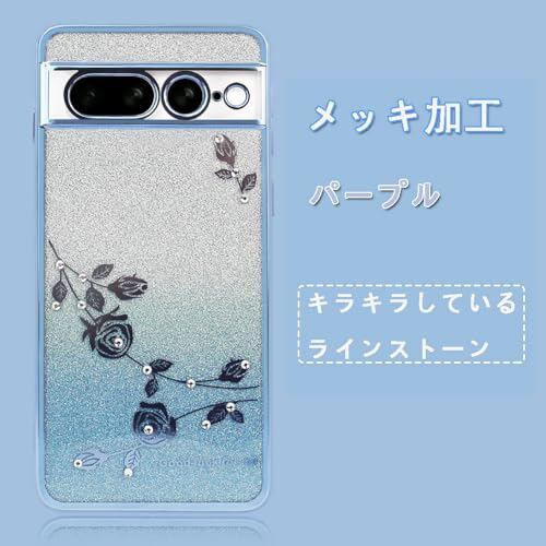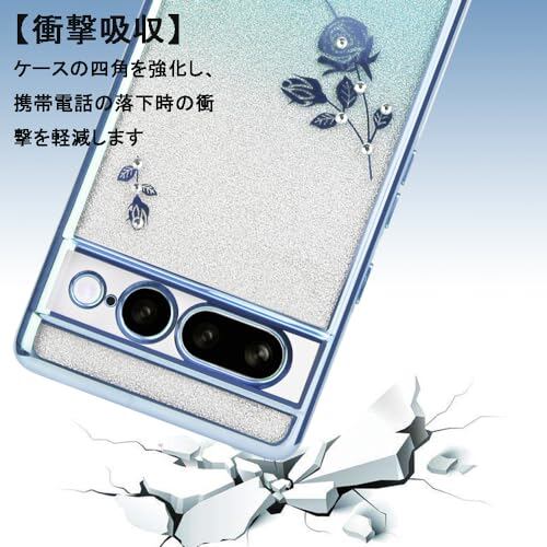 JOOBOY スマホケース 対応 Google Pixel 7Pro ケース リング付き クリア キラキラ メッキ加工 花柄 ソフトケース TPU 薄型 おしゃれ かわいい 衝撃吸収 ブランド グーグル ピクセル 7プロ カバー (ブルー)