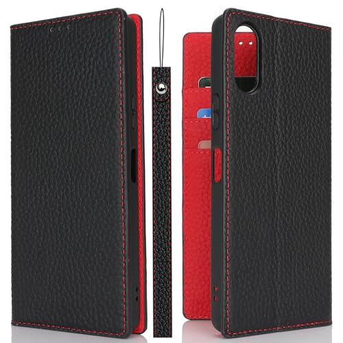 レザー エクスペリア 10 VI ケース 手帳型 Sony 10 VI 手帳型 本革 Xperia SO-52E ケース SOG14 携帯カバー Xperia 10 VI スマホケース XQ-ES44本革 Jaorty 内蔵マグネットカードホルダ付き スタンド機能 人気-ブラック