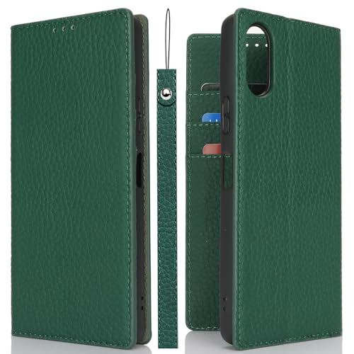 レザー エクスペリア 10 VI ケース 手帳型 Sony 10 VI 手帳型 本革 Xperia SO-52E ケース SOG14 携帯カバー Xperia 10 VI スマホケース XQ-ES44本革 Jaorty 内蔵マグネットカードホルダ付き スタンド機能 人気-ダークグリーン