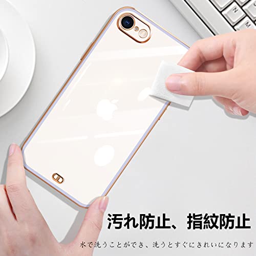 ONETIAOLONG に適合するiPhone SE3 SE2 8 7 用のケース クリア 透明 アイフォンSE3 用のカバー スマホケース 全面保護 耐衝撃 ソフト TPU 薄型 メッキ加工 ストラップホール付き 落下防止(パープル)