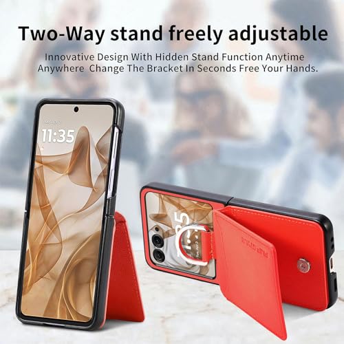 For Motorola Razr 50/Razr 50s/Razr 50d M-51E/Razr 60/60s/60d M-51F ケース カバー Pokaas スマホケース 専用ケース 折りたたみ型 リング付き カード収納 耐衝撃ケース 軽量 薄型 保護ケース 擦り傷防止 (オレンジ, Motorola Razr 50)