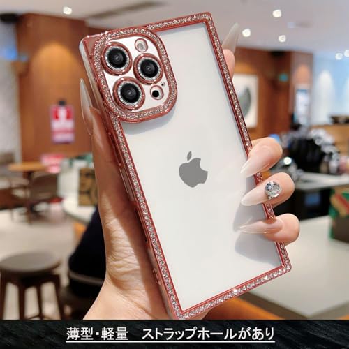 YUYIB スマホケース 対応 iPhone14 Pro クリア ケース 透明 メッキ加工 ドリル きらきら ブリンブリン かわいい キャラクター 衝撃吸収 女性 人気 ストラップホールあり ワイヤレス充電対応 おしゃれ アイフォン14プロ 携帯カバー (ピンク, iPhone14 Pro)