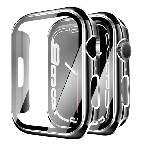 YUGYUG 対応 Apple Watch ケース Series 11/10 Apple Watch カバー PC素材 光沢式 アップルウォッチ ケース ガラスフィルム 一体型 日本旭硝子材 二重構造 アップルウォッチ カバー 全面保護 強化ガラス キズ防止(46mm,ブラック+シルバー)