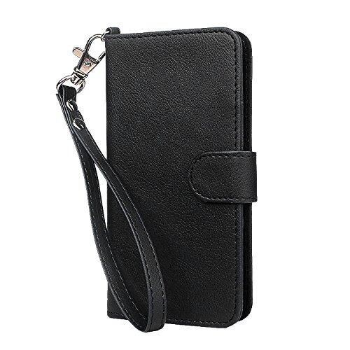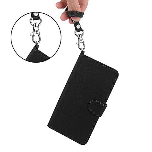 wisers らくらくスマートフォン me F-03K 対応 手帳型スマホケース (ブラック) ストラップ 2種付き (ハンドストラップ/ネックストラップ) 2018 新型