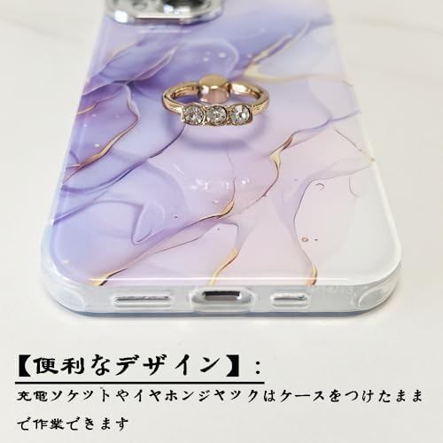 JOOBOY スマホケース 対応 iPhone 16 Pro Max ケース リング付き 大理石柄 レンズメッキ加工 かわいい キャラクター ディズニー 美しい おしゃれ 女性 人気 保護カバー 薄型 軽量 アイフォン16プロマックス 携帯電話かばー (パープル, iPhone16 Pro Max)