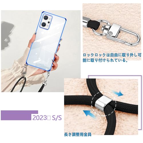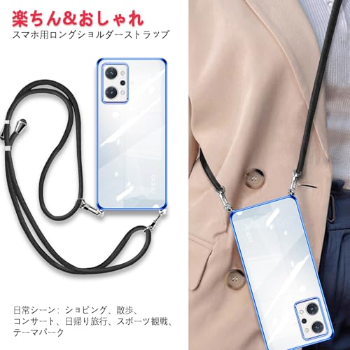 OPPO Reno 9 A Reno 7 A 用の ケース クリア ショルダー TPU OPG04 A201OP(CPH2353)カバー スマホケース 薄型 透明 肩掛け 首掛け 斜めかけケース 耐衝撃(ブルー)