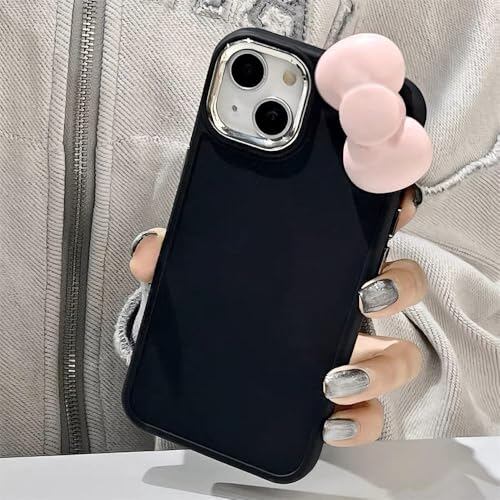 LUCKCOF ケース For iPhone X/XS かわいいピンクリボンボウ美的ケース アヒル TPUカバー 衝撃吸収 落下防止 アイフォン X/XS 專用スマホ ケース カバー 薄型 特製スマホケース レンズ保護 スレ傷防止 かわいい携帯電話ケース シンプル ボウノット おしゃれ -黒