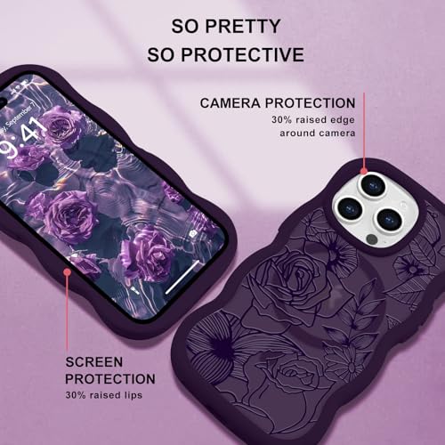 Pepmune iPhone 15 Pro Max 用 ケース MagSafe対応 半透明 ウェーブ 花柄 耐衝撃 滑り止め 指紋防止 スマホケース 可愛い 人気 おしゃれ 波型 ワイヤレス充電対応 保護ケース 軽量 バンパー いphone15 Pro Max 用 カバー (ダークパープル)