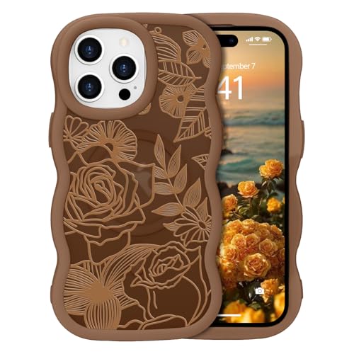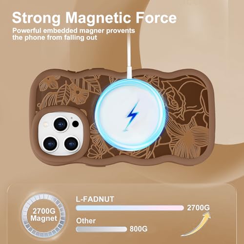 Pepmune iPhone 14 Pro Max 用 ケース MagSafe対応 半透明 ウェーブ 花柄 耐衝撃 滑り止め 指紋防止 スマホケース 可愛い 人気 おしゃれ 波型 ワイヤレス充電対応 保護ケース 軽量 バンパー いphone14 Pro Max 用 カバー (茶色)