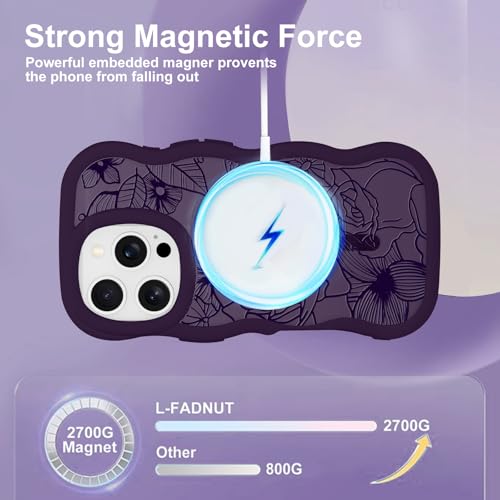 Pepmune iPhone 16 Pro 用 ケース MagSafe対応 半透明 ウェーブ 花柄 耐衝撃 滑り止め 指紋防止 スマホケース 可愛い 人気 おしゃれ 波型 ワイヤレス充電対応 保護ケース 軽量 バンパー いphone16 Pro 用 カバー (ダークパープル)