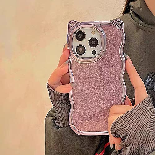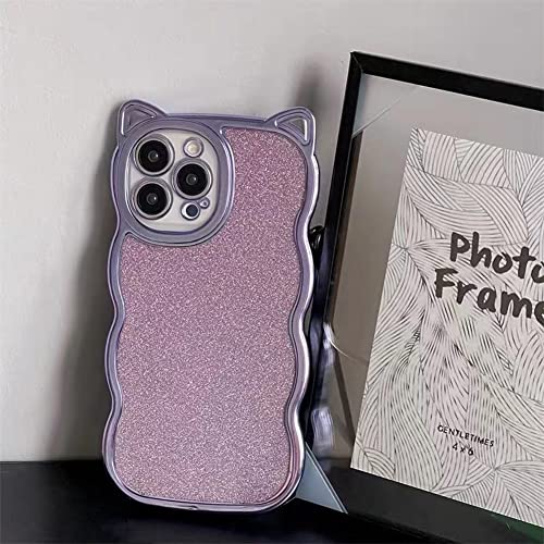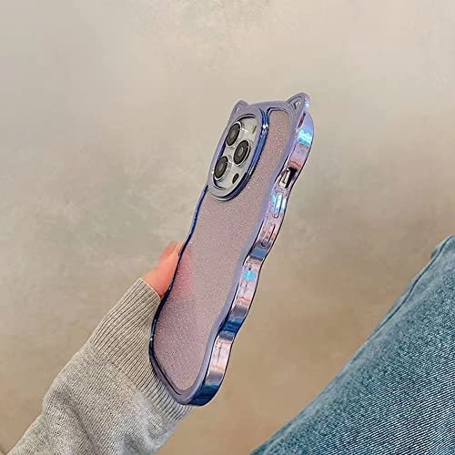 【Kunyehdo】 スマホケース iPhone 14 Pro Max ケース カバー 対応 メッキ 光沢 ピンク 青 紫 緑 閃粉 猫耳 猫柄 キラキラ おもしろ iPhoneケース 女 軽贅沢 かわいい 薄型 スリム 人気 おしゃれ 韓国 お洒落 立体 波形 全面保護 シリコンゴム 創意 落下防止 ソフトケース (iPhone14 Pro Max,紫)