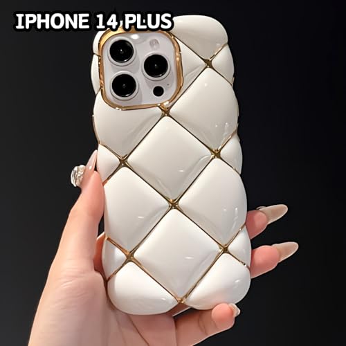スマホケース ケース キルティング ぽこぽこ ギャル 女子高校生 コギャル 韓国 可愛い 11 12 13 14 15 16 plus pro max (ホワイト,14 PLUS)