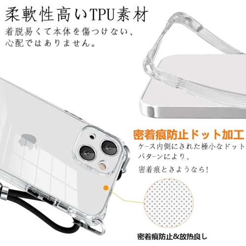 iphone 15 ケース クリア 斜めがけ ショルダー タイプ カバー 紐付き 織りストラップ付き 肩掛け 首掛け アイホン 15 ケース 米軍MIL規格 SGS認証 TPU 透明 スマホケース 携帯ケース ストラップホール付き 薄型 ソフトケース 指紋防止 滑り止め 黄変防止 ソフトケース カメラ保護 15 ケース 6.1インチ用(透明)