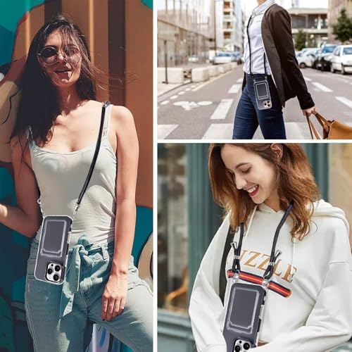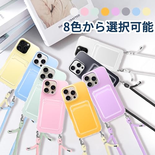 iPhone 16 Pro Max 用 ケース 背面ポケット カード収納 ショルダー iPhone 16 Pro Max 用 カバー 斜めかけ 縄掛け 肩掛け 首掛け ストラップ付き 薄型 軽量 TPU バンパー 韓国 可愛い かわいい アイフォン16プロ マックス 用 スマホケース (ブラック)