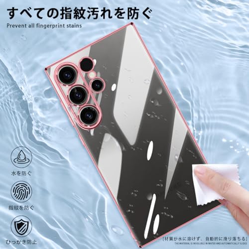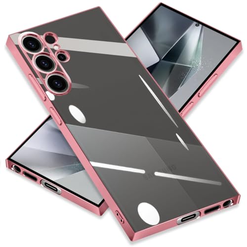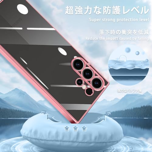 ZHUAZHULE Galaxy S24 Ultra 5G ケース クリア ギャラクシー スマホケース メッキ加工 耐衝撃 カバー 透明 TPU レンズ保護 ストラップホール付き 薄型 黄変防止 擦り傷防止 人気 (ローズゴールド)