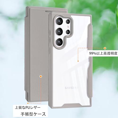 YUYIB スマホケース 対応 Samsung Galaxy s23 ultra ケース SC-52D SCG20 手帳型 背面 クリア 透明 高級なPUレザー+PCパネル+TPUバンパー マグネットが内蔵 衝撃吸収 軽量薄型 ブランド スマホケース ギャラクシー s23ultra 手帳型 ケース (カーキ色, Galaxy s23 Ultra)