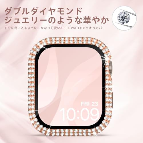 「キラキラ保護カバー」すぐに目に入るように、かなり可愛いアップルウォッチ キラキラカバーです。ダブルダイヤモンドがキラキラしていてジュエリーのような華やかで高級感を醸し出していて、みんなにオシャレって言われたデザインです。強化ガラスフィルムとPCフレームはApple Watchを引っかきキズ、衝撃、偶発的な落下から保護できます。