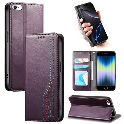 ONETHEFUL 対応 iPhone SE ケース 手帳型 アイフォン se 第2世代 / 第3世代 / iphone8 / 7携帯カ あいふおんSEケース カード収納 iphonese ケース スタンド機能 財布付き iPhone SE3 2022スマホケース カード入れPUレザー スピーカーホール TPU素材 耐衝撃 ストラップホール付き リストバンド マグネット式 パープル